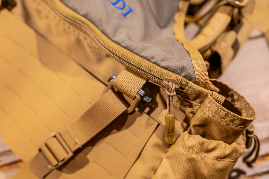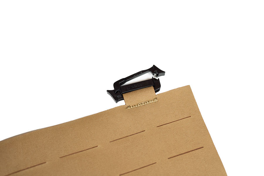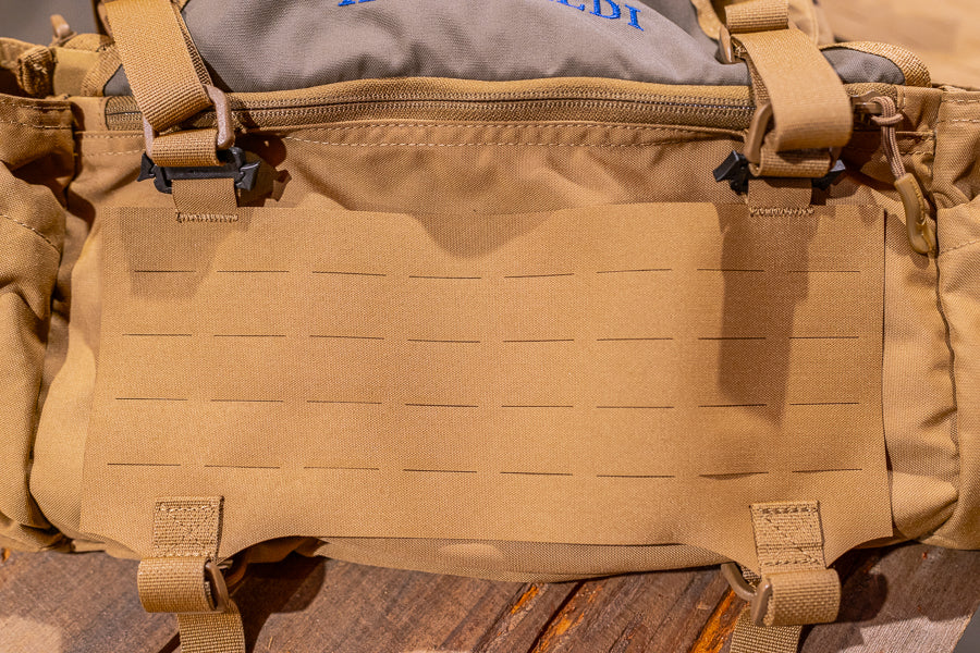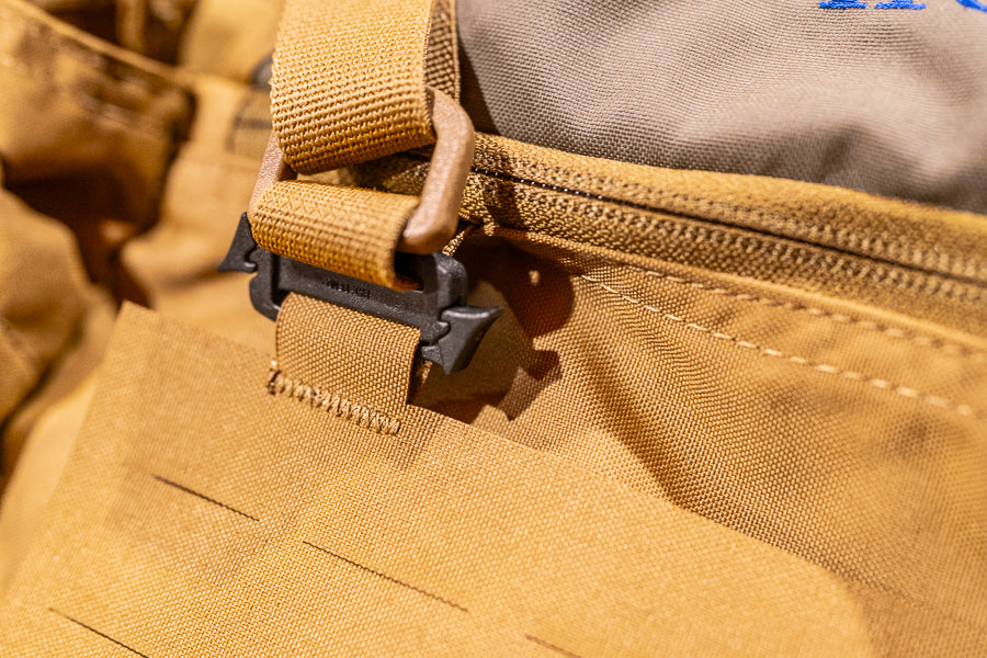Strategically designed to provide modular expansion and attachment via slick clip hardware top side and sturdy nylon strips with tri-glide on the lower side. This approach ensures continued use of top side D-Rings for lashing straps and no interference with the existing zipper sleeve pouch on the Elevate series.
