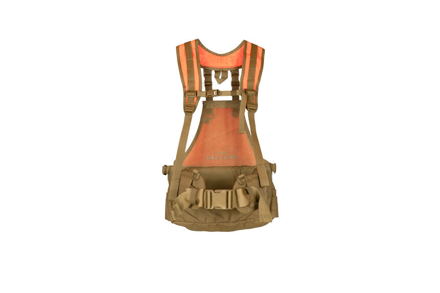 - Shoulder harness inspired by our friends at Hill People Gear with attachment points to accommodate GPS, e-collar, etc accessories w/ configurability to enable suspender or backpack style mount points