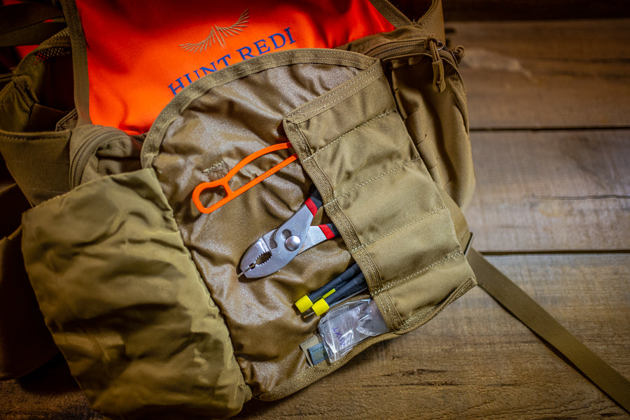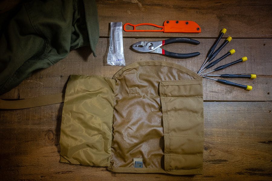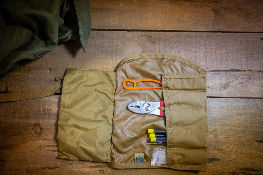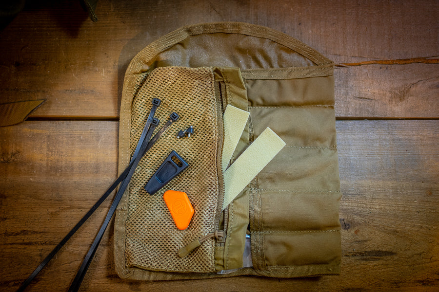 Rapid Access Tool (RAT) Roll was designed to keep small essentials organized and available for quick access in the field. Five internal slots available to secure pliers, side-cutters, knives, or whatever small tools you want to take afield. The flap closure includes a handy zipper compartment to keep small items secure but quickly available.